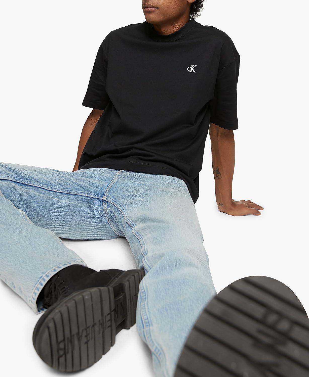 Crafted from soft cotton for an effortless feel, this Calvin Klein t-shirt features an embroidered monogram logo at front in a relaxed fit for an iconic, signature design. Cut in a relaxed fit with a crewneck, a straight hem and twin-needle topstitching. Modern and street-ready, this Calvin Klein Jeans graphic tee is a perfect layer or on-trend style statement.