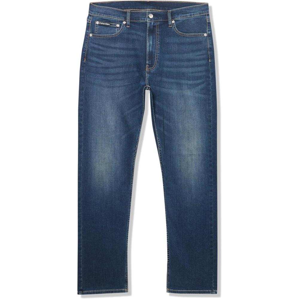 An iconic essential with super flexible high stretch denim, these reimagined jeans feature enhanced movement for maximum, all-day comfort. Updated with signature metal logo hardware and back pocket omega topstitching, a Calvin Klein hallmark. Cut in a straight fit with considered detailing and reinforced seams.