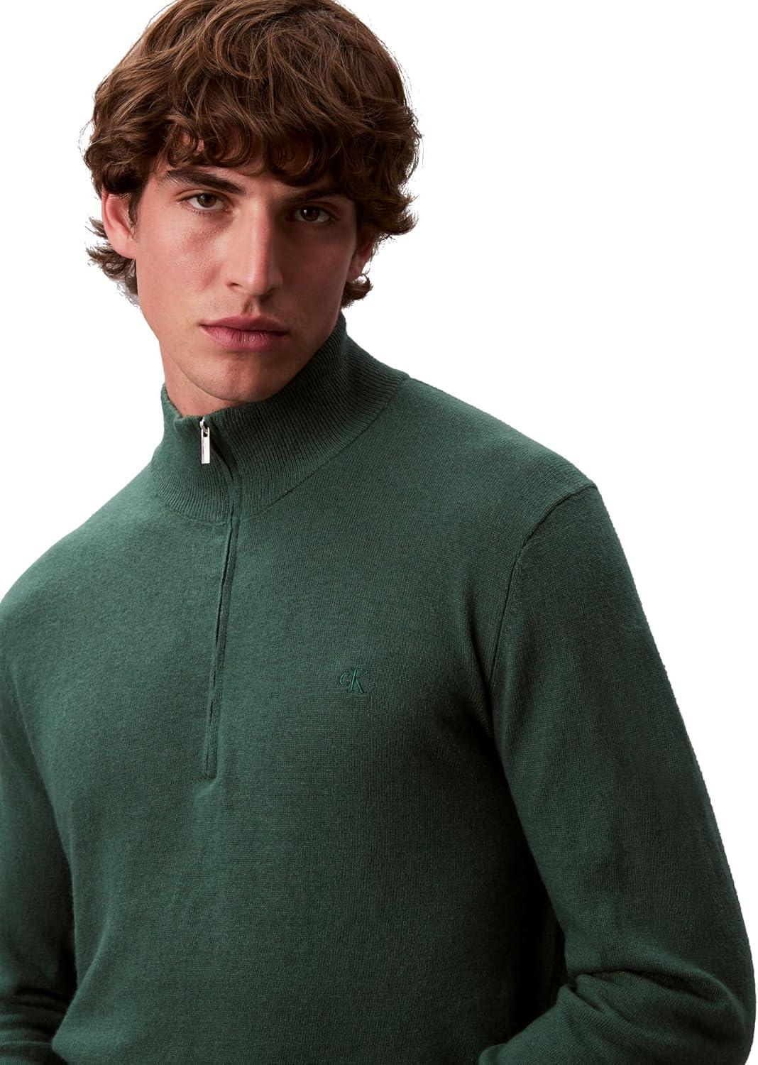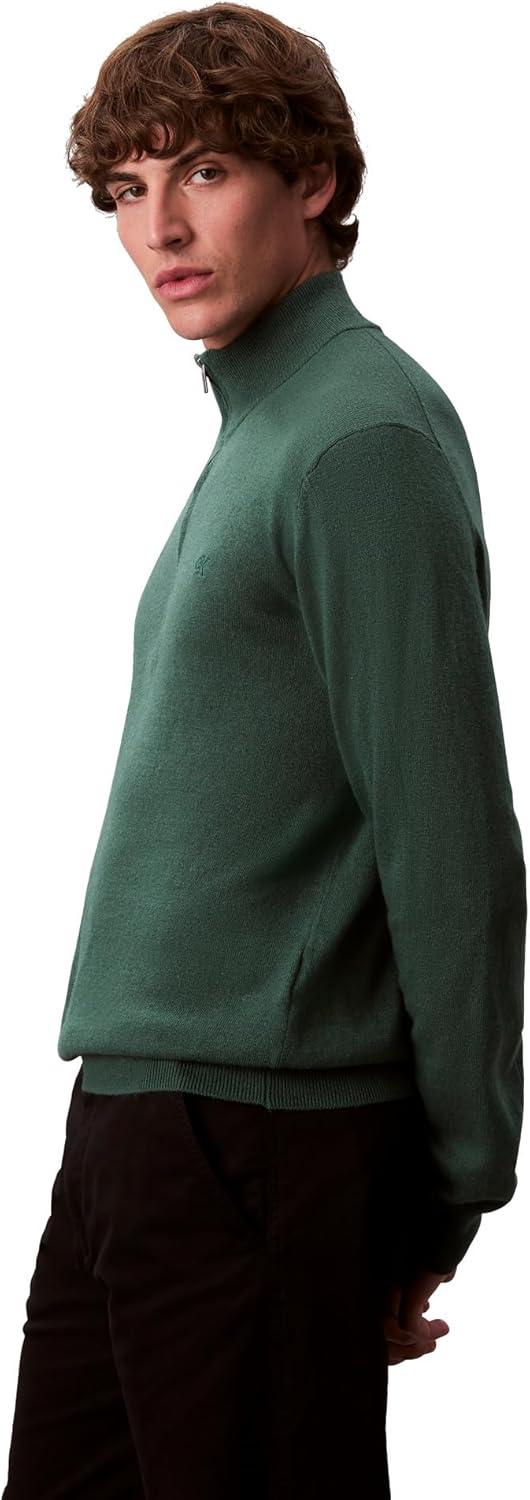 Calvin Klein Mens Wool Blend Quarter Zip Sweater(Hunter Green)