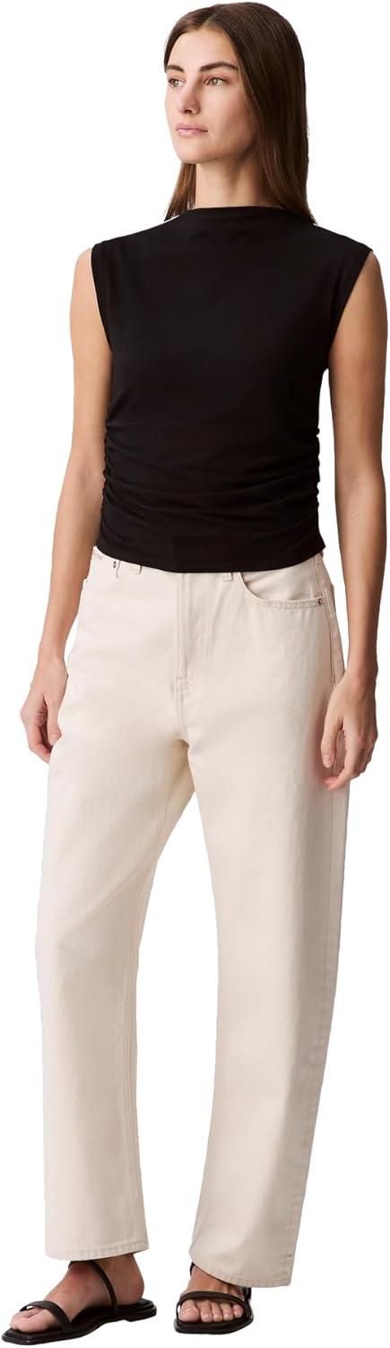 Calvin Klein Women’s Cotton Jersey Mock Neck Top(Brilliant White)