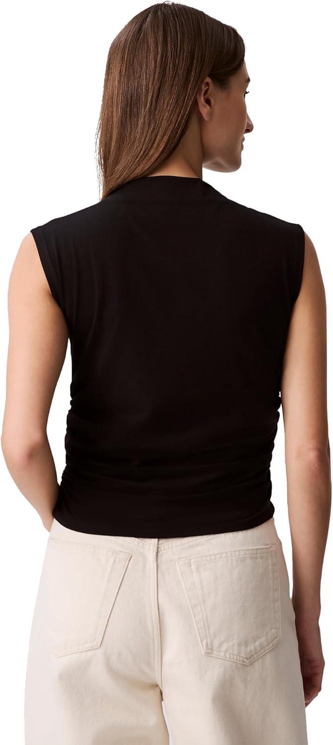 Calvin Klein Women's Cotton Jersey Mock Neck Top(Black)