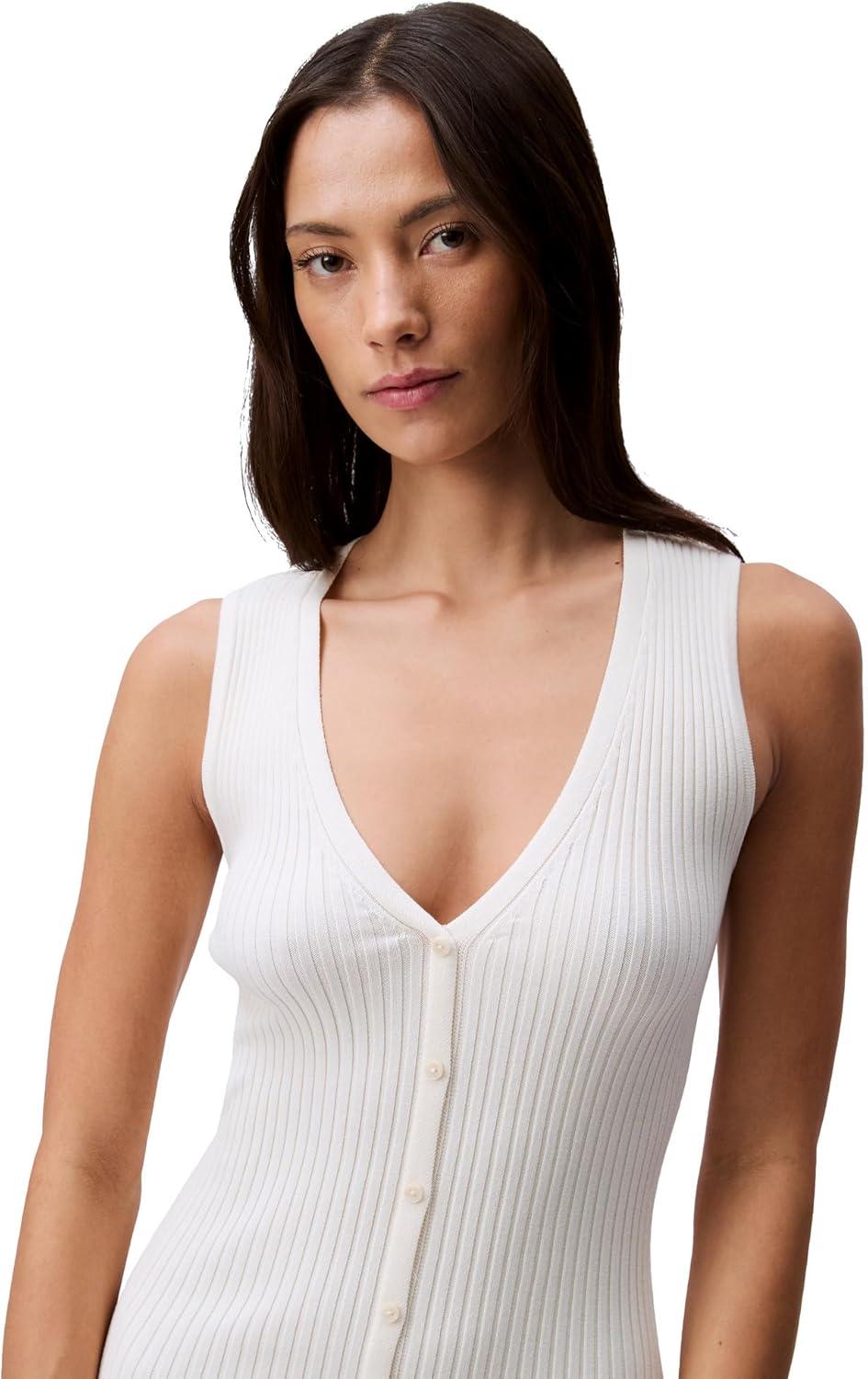 imageCalvin Klein Womens Cotton Rib VNeck Polo DressAntique White