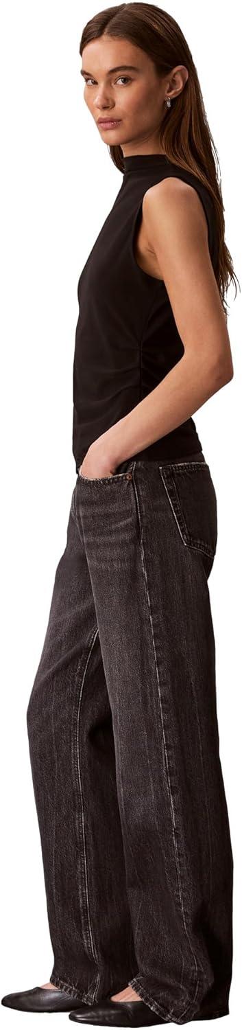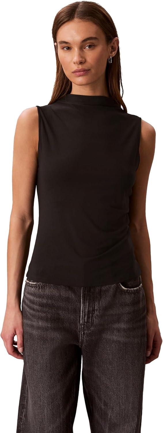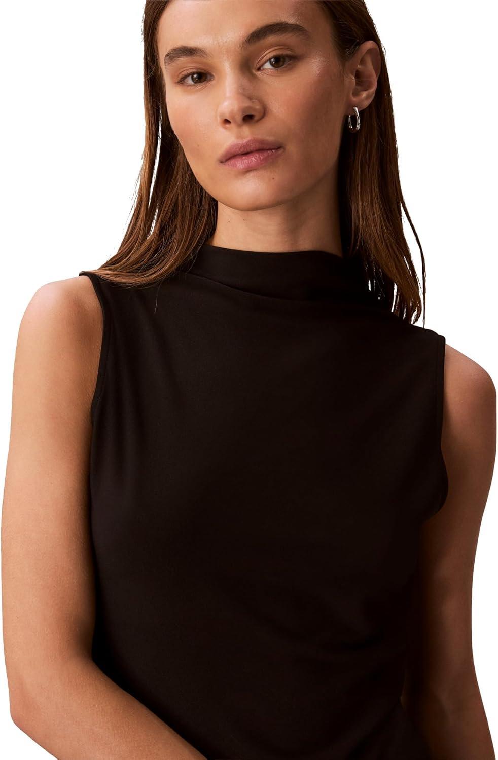 Calvin Klein Women’s Crepe Mock Neck Top(Black)