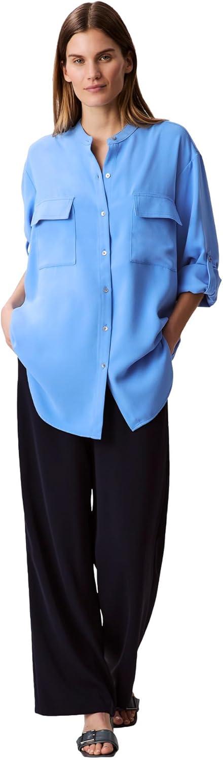 A relaxed button-down shirt in smooth crepe. Styled with a banded collar and long sleeves.