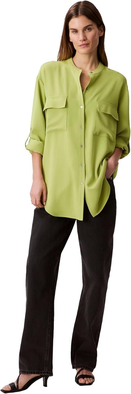 Calvin Klein Women's Crepe Relaxed Button-Down Shirt(Dark Citron)