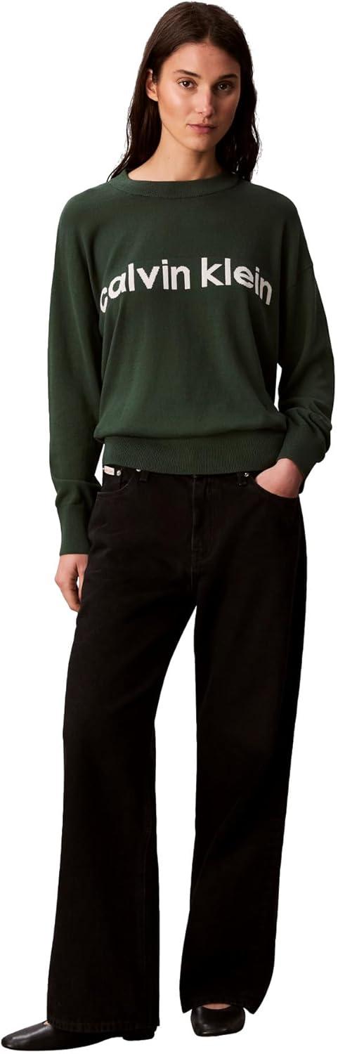 Styled with a lightweight drape, this pull-on sweater is finely knit with a lowercase Calvin Klein logo at the center front. Finished with drop shoulders and a mockneck for an on-trend look.