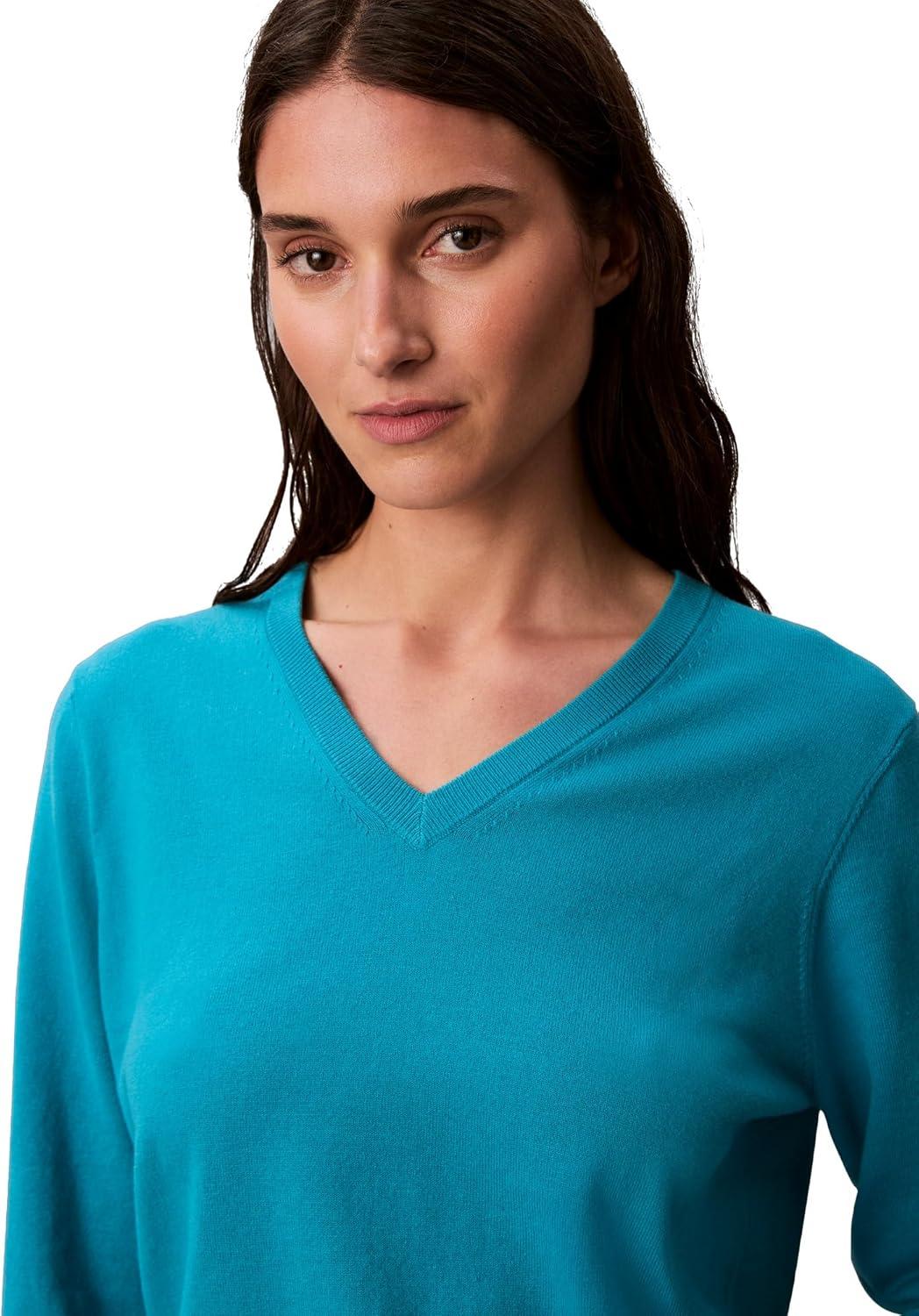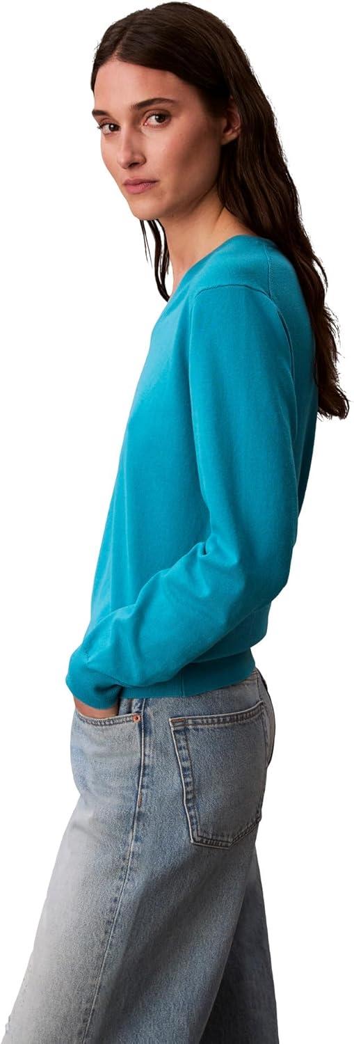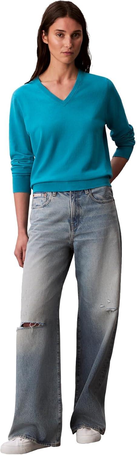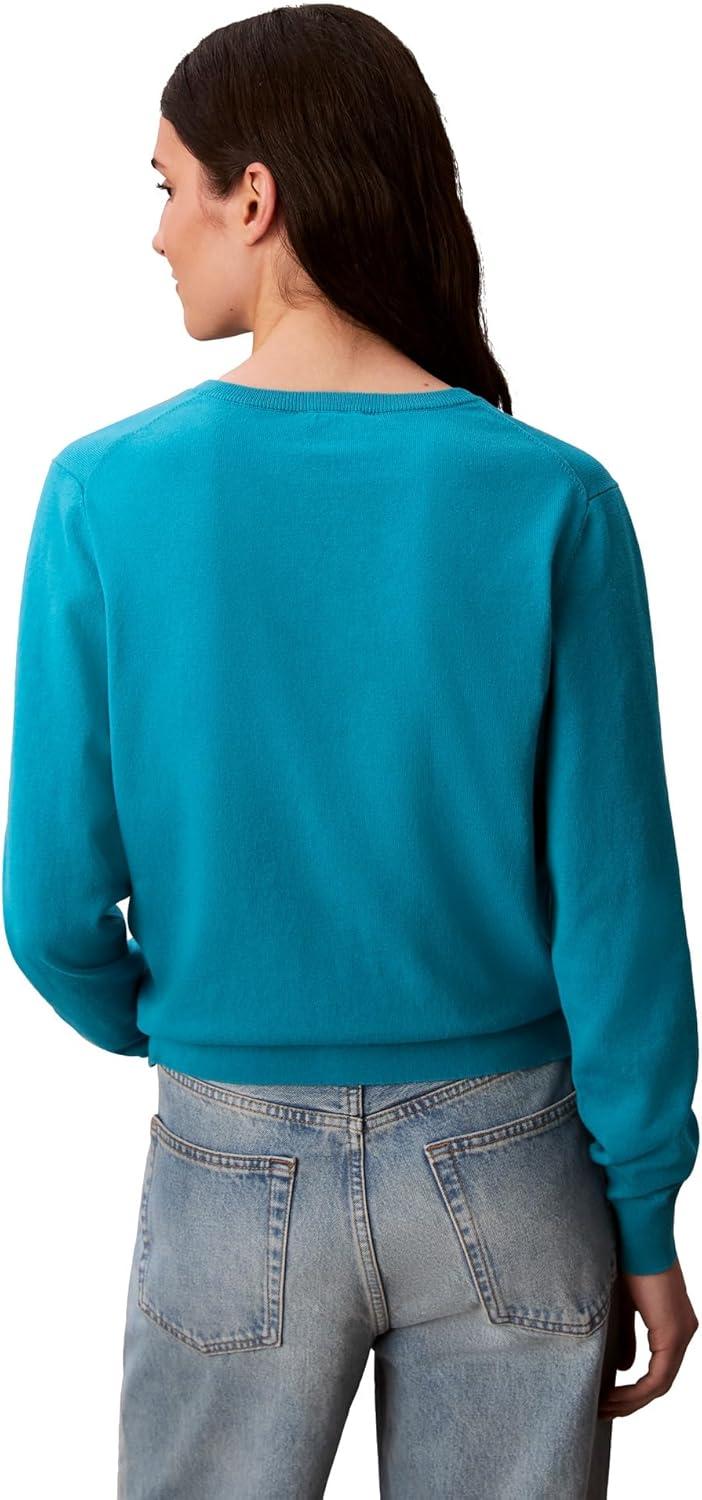 Calvin Klein Women’s Monogram Logo V-Neck Sweater(Teal Slate)