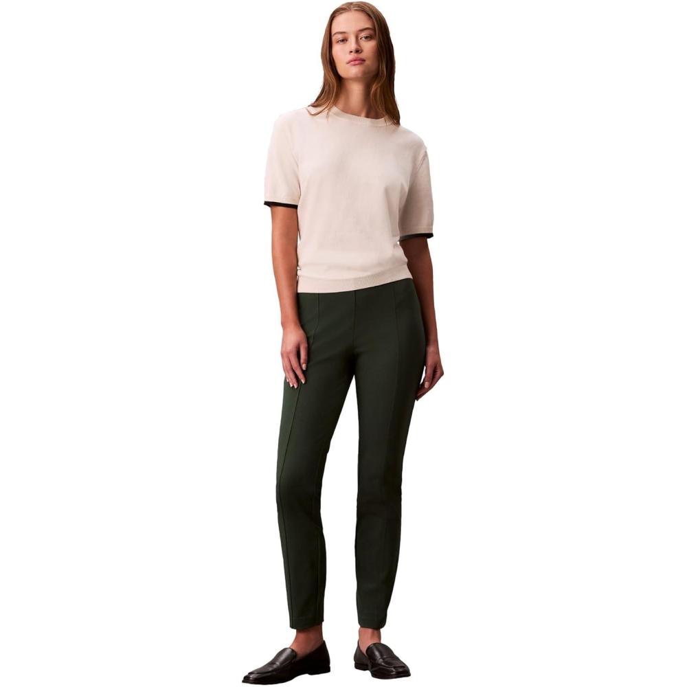 A tailored, high rise silhouette that shapes to your form. These skinny fit ponte knit pants are designed with a supportive elastic waistband and a signature logo plaque at the hip.