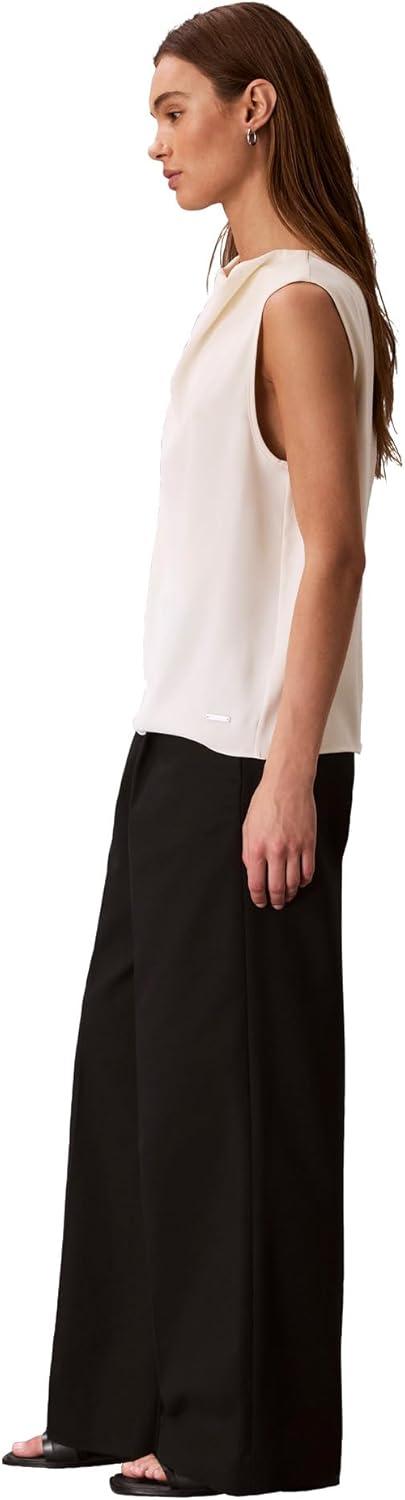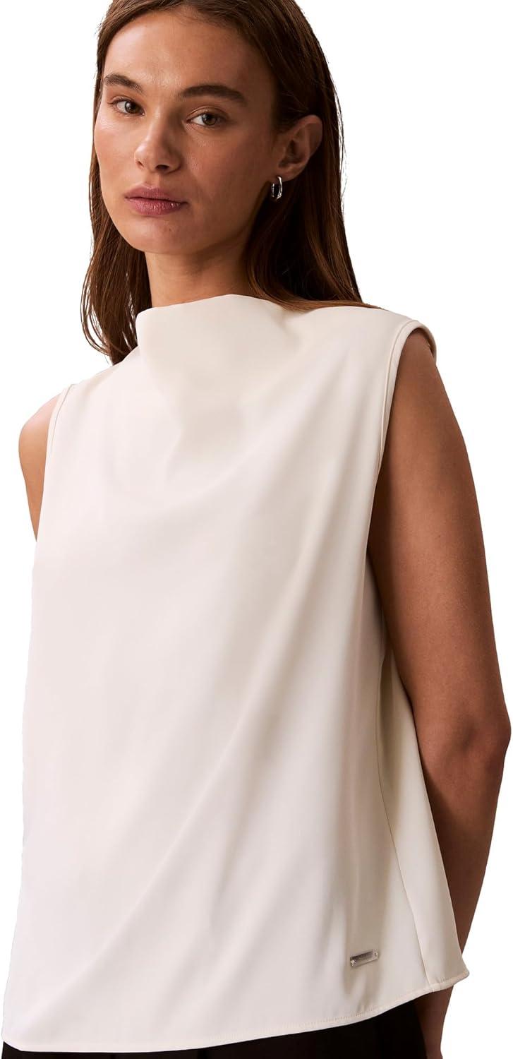Calvin Klein Women's Satin High Neck Tank Top(Antique White)