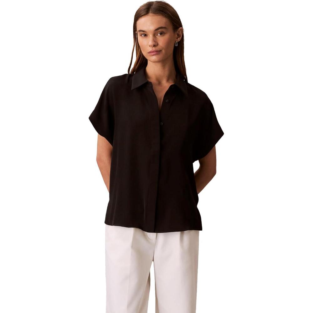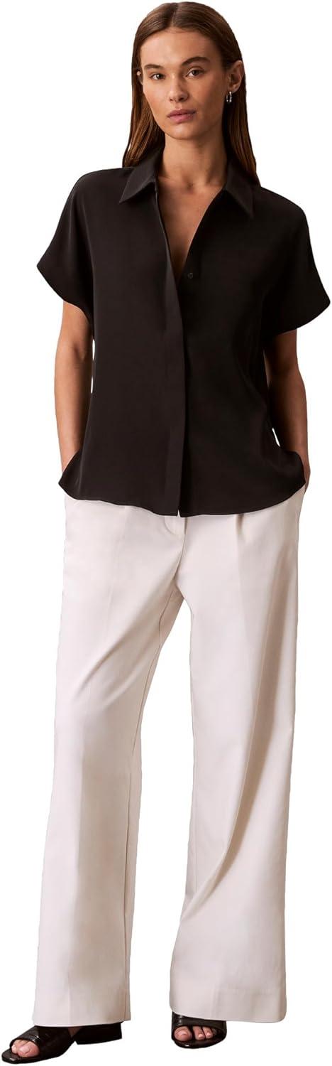 Calvin Klein Women's Satin Short Sleeve Top(Black)